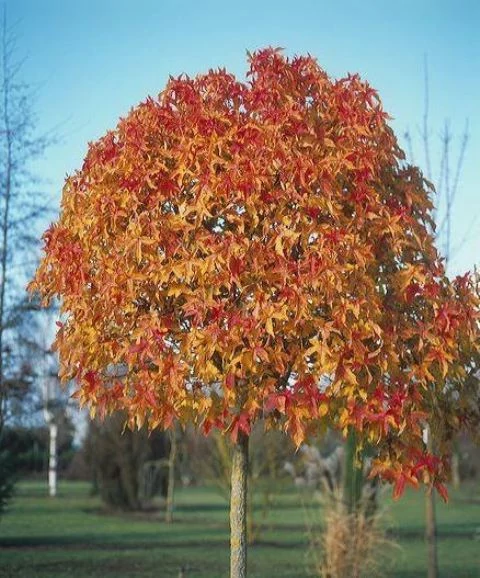 Törzsre oltott, gömb koronájú fa. Levelei 5-7 karéjosak, ősszel sárgás-vöröses lilára színeződnek. Napos fekvést, savanyú, tápdús talajt kedvel.