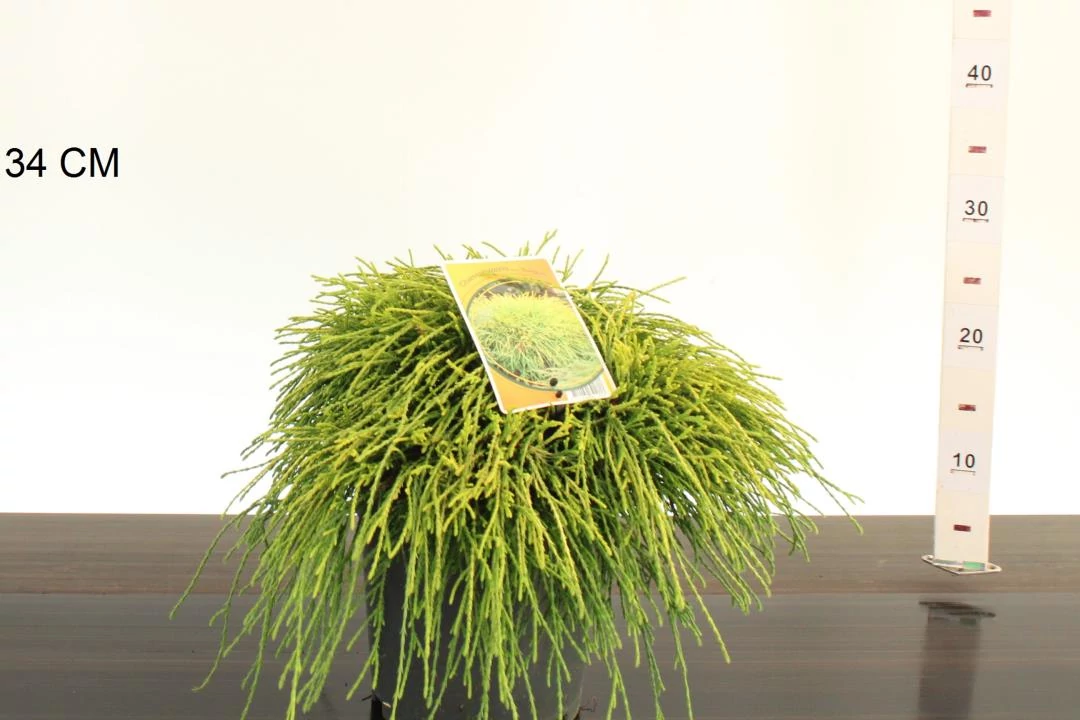 Lassú növésű elterűlő ,csüngő ágú, sárga lombú örökzöld. Színét télen is tartja.