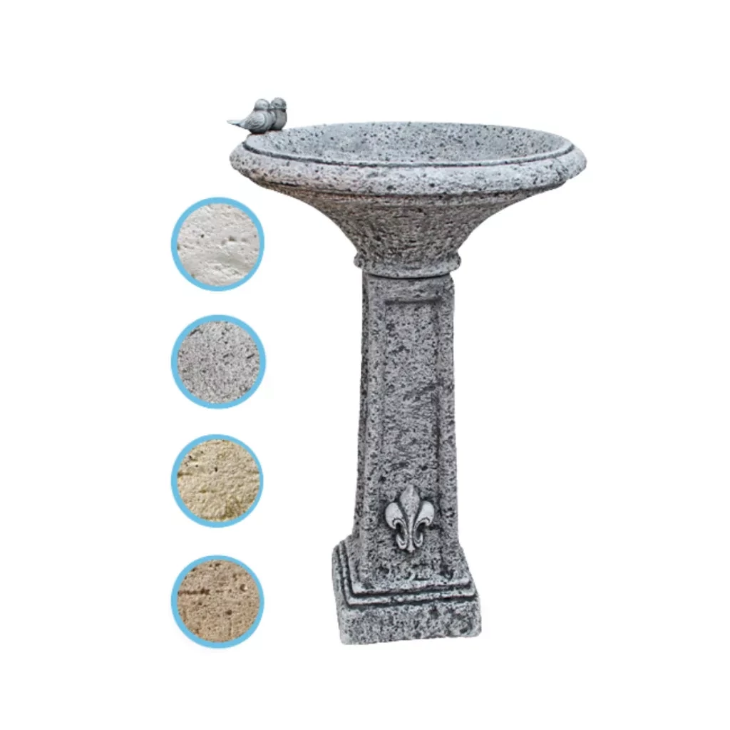 Cementből készült kőhatású madárfürdető.