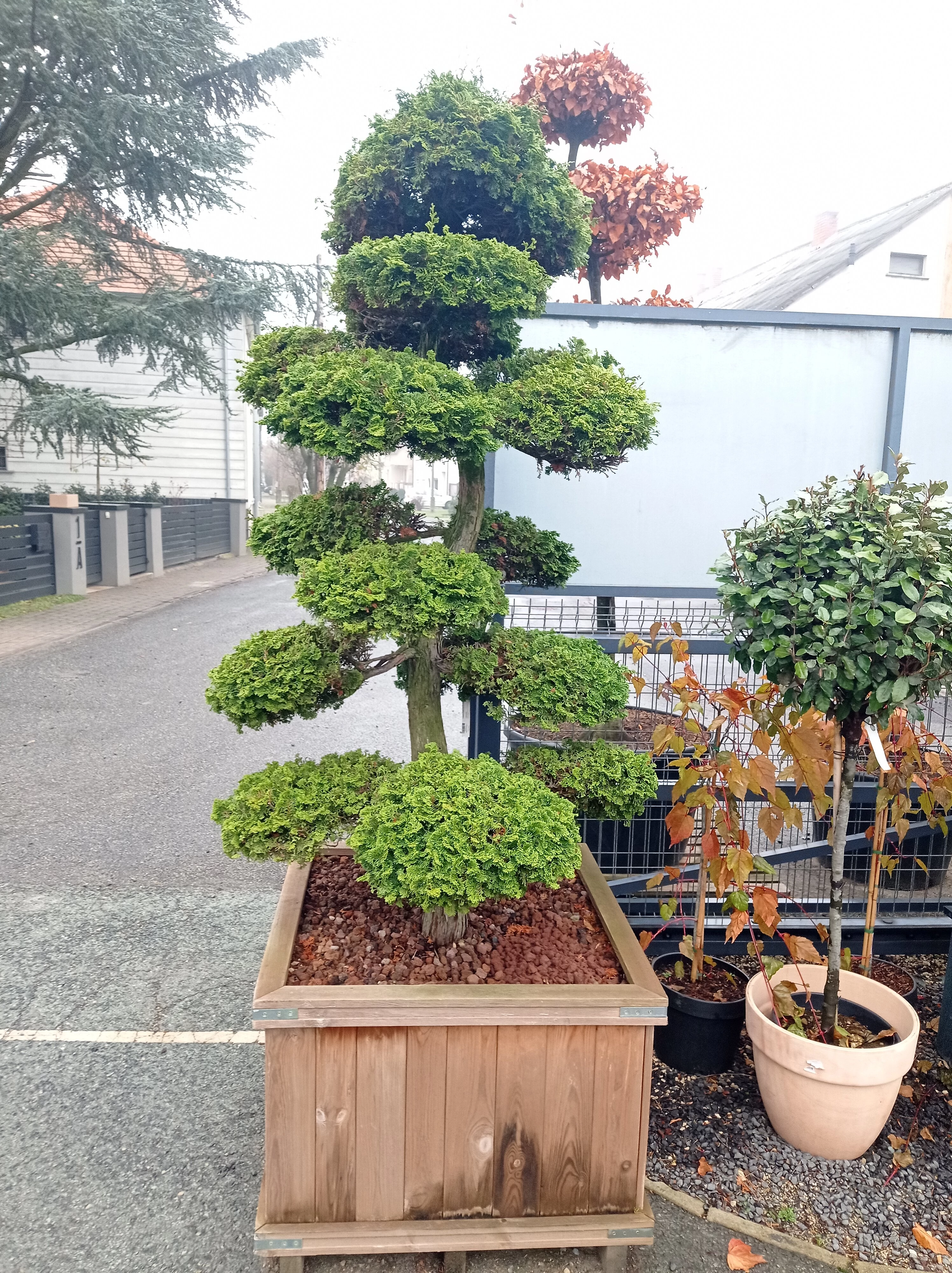 Boróka bonsai JUNIPERUS MEDIA HETZII BONSAI 175/200 100×100CM FA LÁDÁBAN