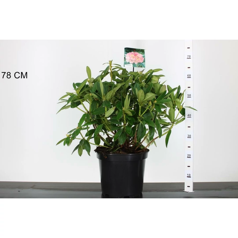 1,2-1,5 m magasra növő, sötétzöld levelű, árnyékkedvelő örökzöld. Virágai barack-rózsaszínűek, április-májusban nyílnak. Savanyú talajt igényel.