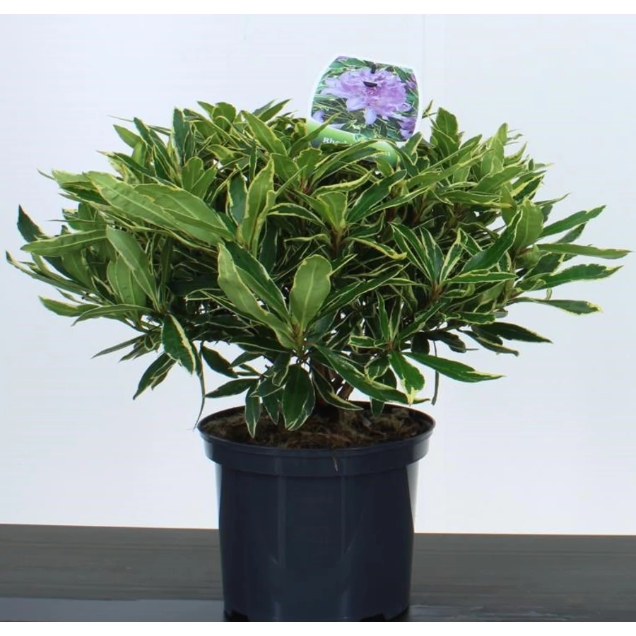 1,5-2 m magasra növő árnyékkedvelő örökzöld. Levelei sárgán mintázottak. Virágai lilák, április-májusban nyílnak. Savanyú talajt igényel.