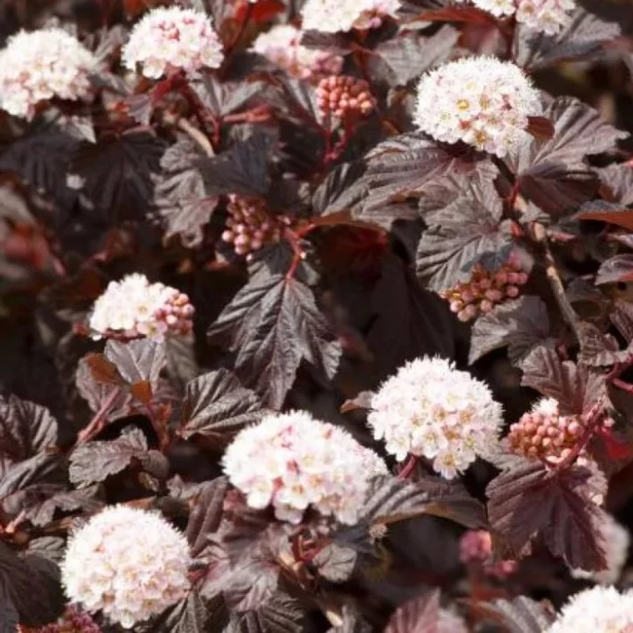 0,9-1 m magasra növő, lombhullató cserje. Mélybordó lombjával és május-júniusban nyíló, rózsaszínes fehér virágaival is díszít. Jó várostűrő.