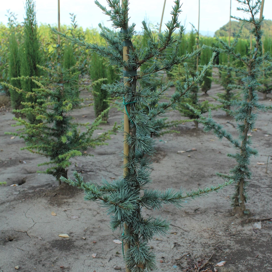 15-20 m magasra növő, 6-8 m széles, gyors növekedésű, laza koronájú fa. Porzós virágait ősszel hozza, tobozai a 3. évtől jelennek meg. Savanyú talajon lesz szép kék színű a lombja. Szárazságtűrő.
