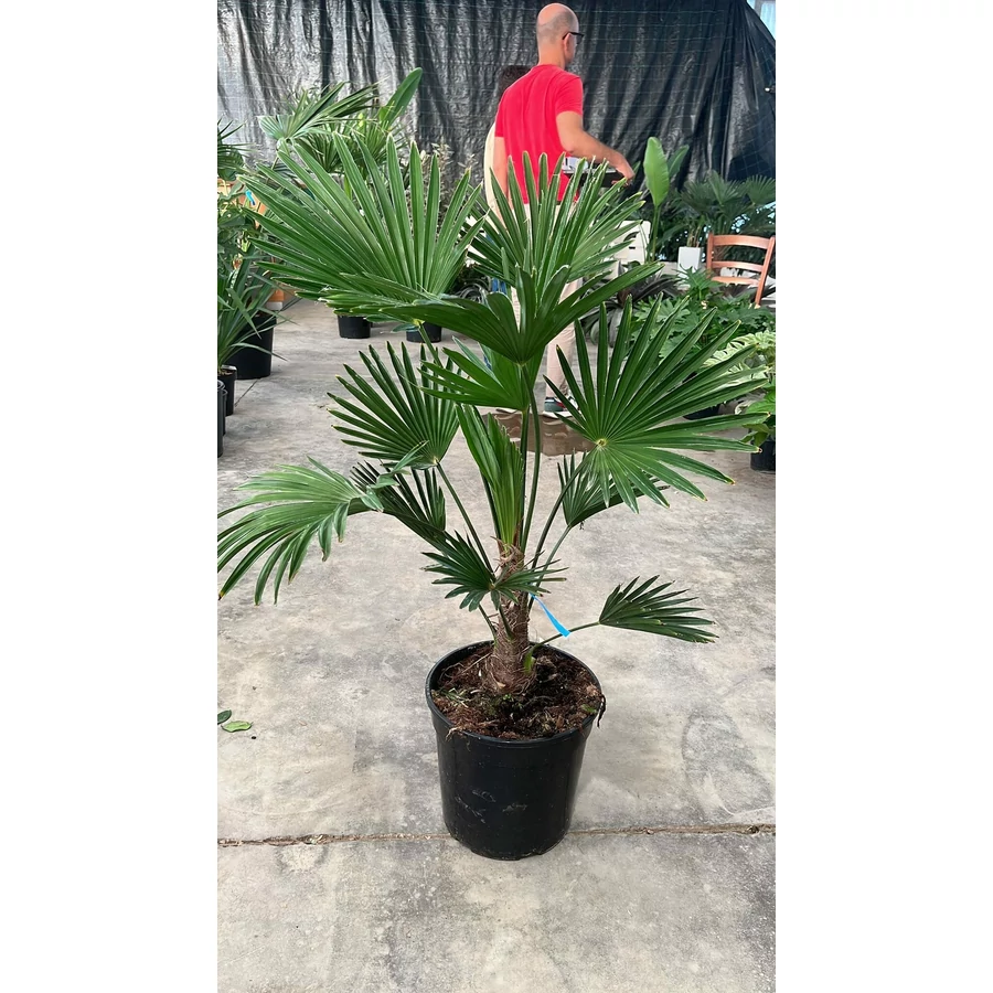 7-10 m magas gyors növekedésű télálló pálma. Levél átmérője 80-90 cm is lehet, évente 8-10 levelet is hozhat. Enyhén savanyú talajt, napos helyet kedvel. Nagy hidegben takarni kell.
