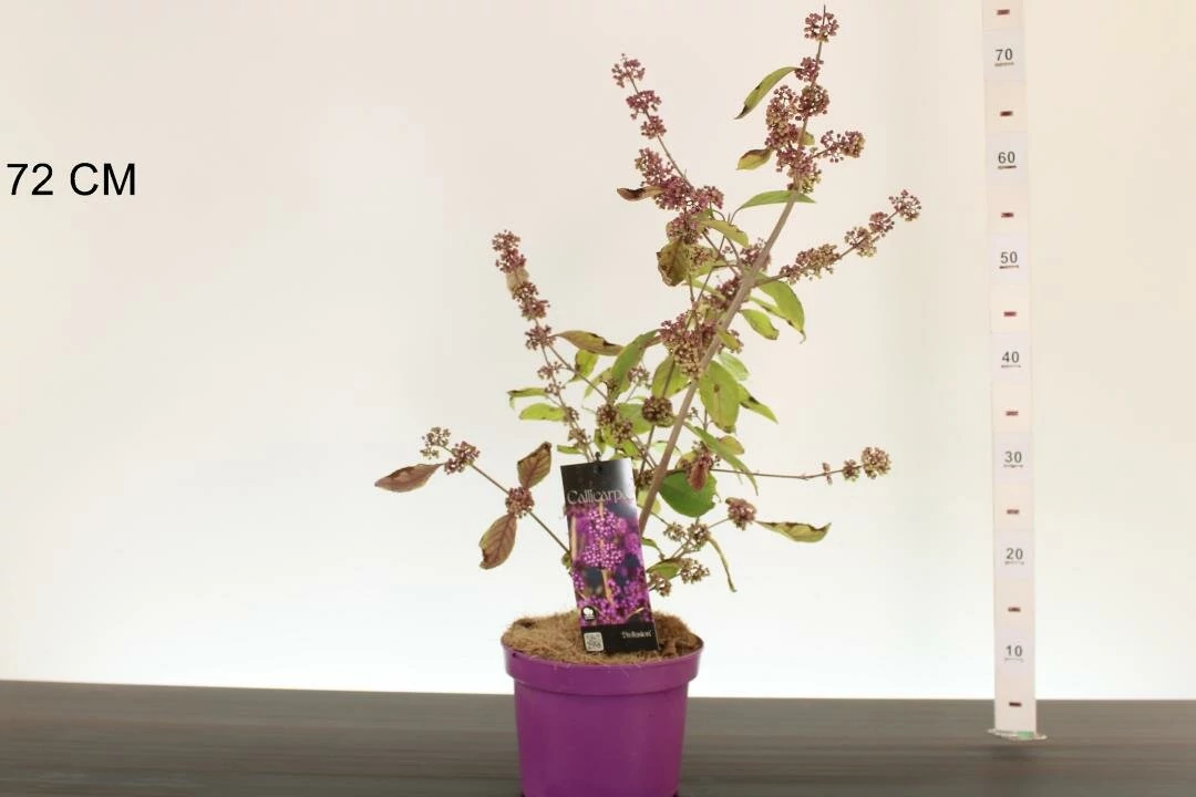 1-2 m magasra megnövő terebélyes cserje, világoszöld, ovális levelekkel. Levelei ősszel lilára színeződnek. Termése lila, napos meleg helyre ültessük!