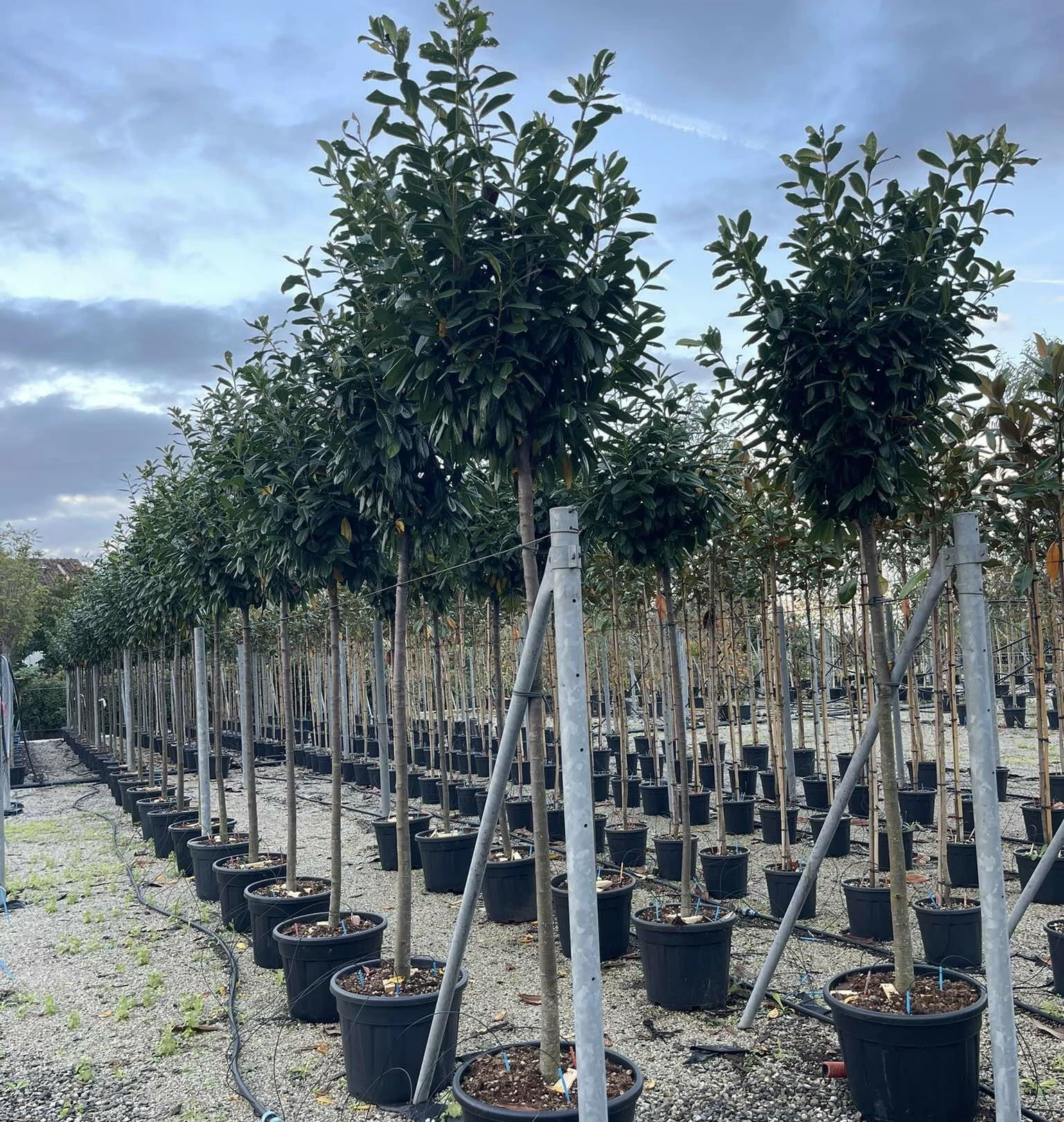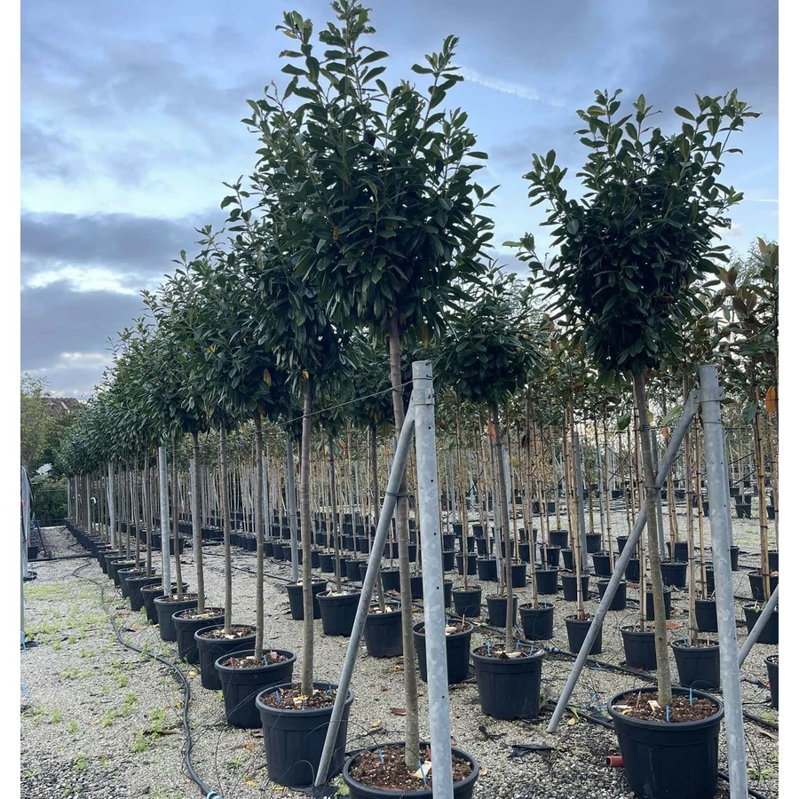 4-6 m magasra és szélesre növő, gyors növekedésű örökzöld, magas törzzsel. Levele nagy, fénylő bőrnemű. Virágai fehérek. Félárnyékot, árnyékot és napot is kedvel.