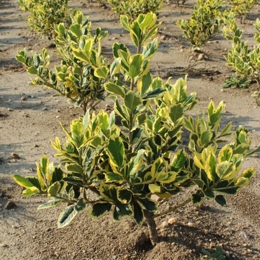 4-6 m magasra növő örökzöld. Virága apró, fehér színű, termése vöröses bogyó. Erőteljes, dús fajta.